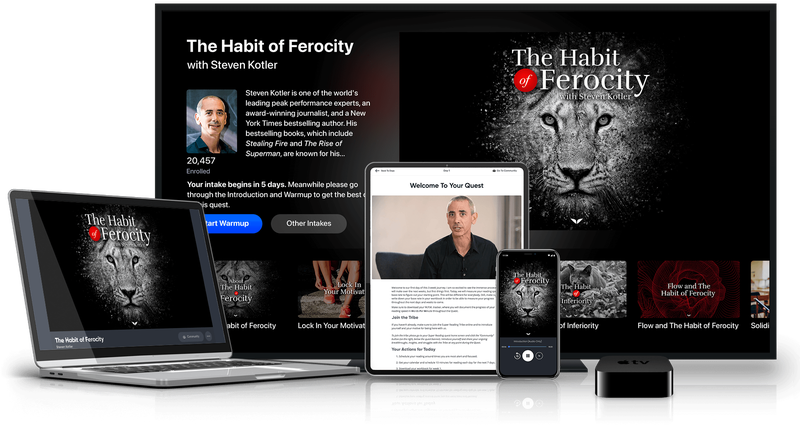 Flow is a state of peak consciousness that greatly amplifies your focus, productivity, and mastery of any given skill - and it’s also the subject Steven is most known for. Here you’ll learn how to master the flow state and harness it as a component of Ferocity.